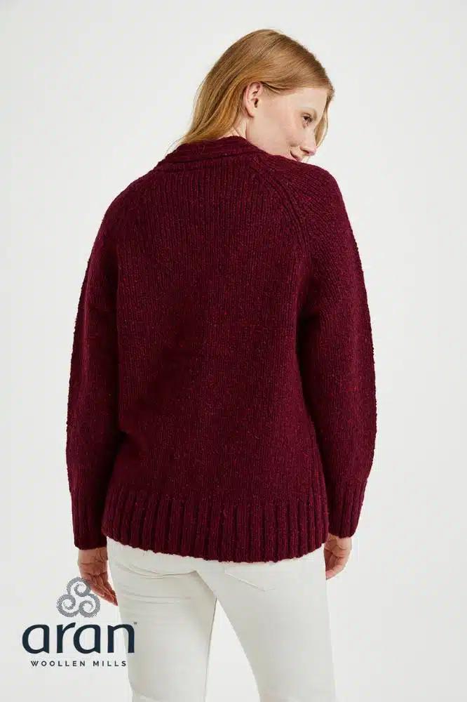 Aran Woollen Mills Ladies Donegal Cardigan Sice Pocket Winter Berry