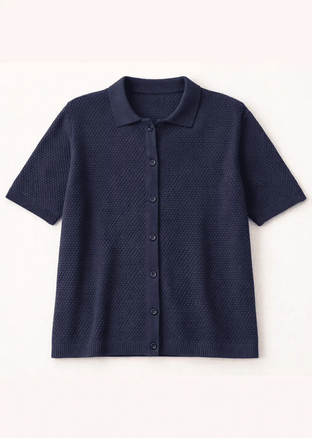 De Circus Clothing Mood Indigo Sweater ABZK5045 is een verfijnde knit met karakter. Dit is geen standaard zomerse trui, maar een doordacht ontwerp waarin vorm, structuur en draagcomfort samenkomen. De sweater is uitgevoerd als polo top met korte mouwen, gebreid in biologisch katoen met een subtiele structuur in het breisel. Dat geeft diepte en luxe, zonder dat het onrustig wordt.