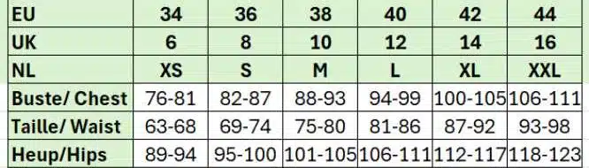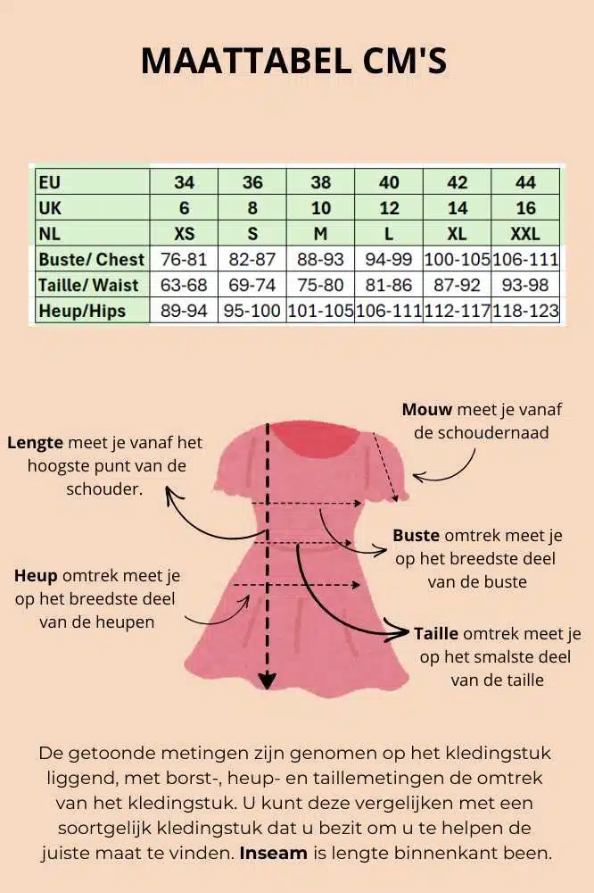 • Het model draagt maat 38 en is 1.72 m lang