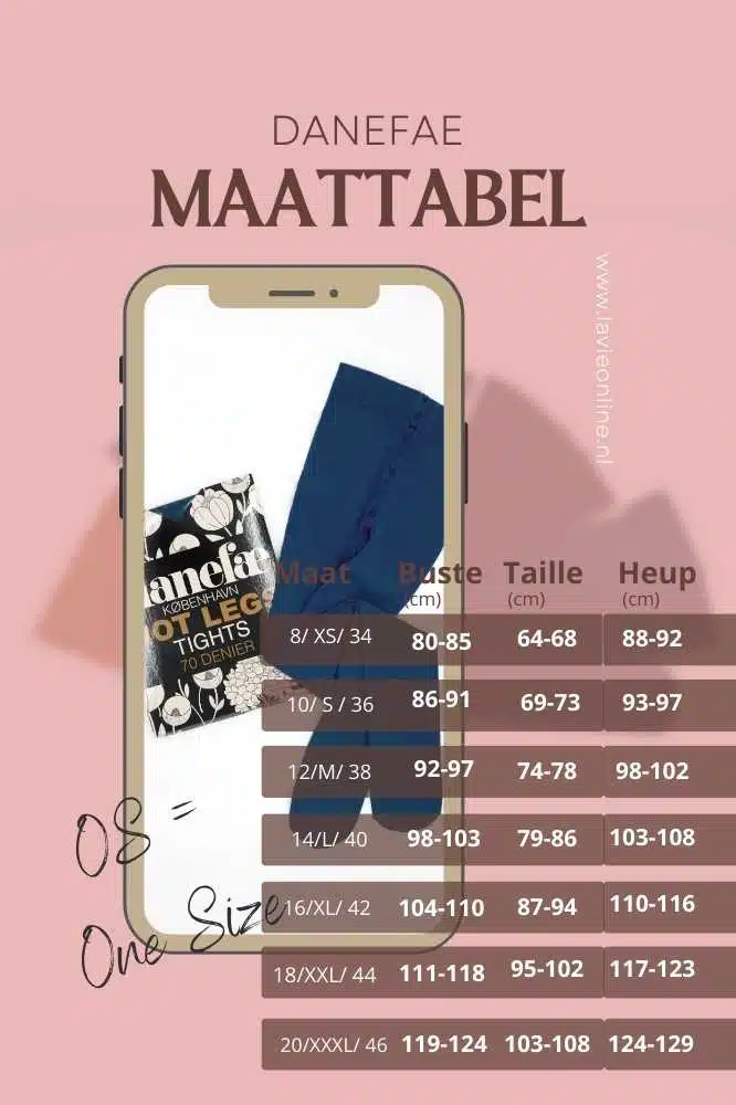 • Maatvoering: De Danehot Legs Tights zijn verkrijgbaar in maat S t/m XXL en bieden een uitstekende pasvorm voor diverse lichaamstypes. De panty past zich soepel aan je lichaam aan voor optimaal comfort.