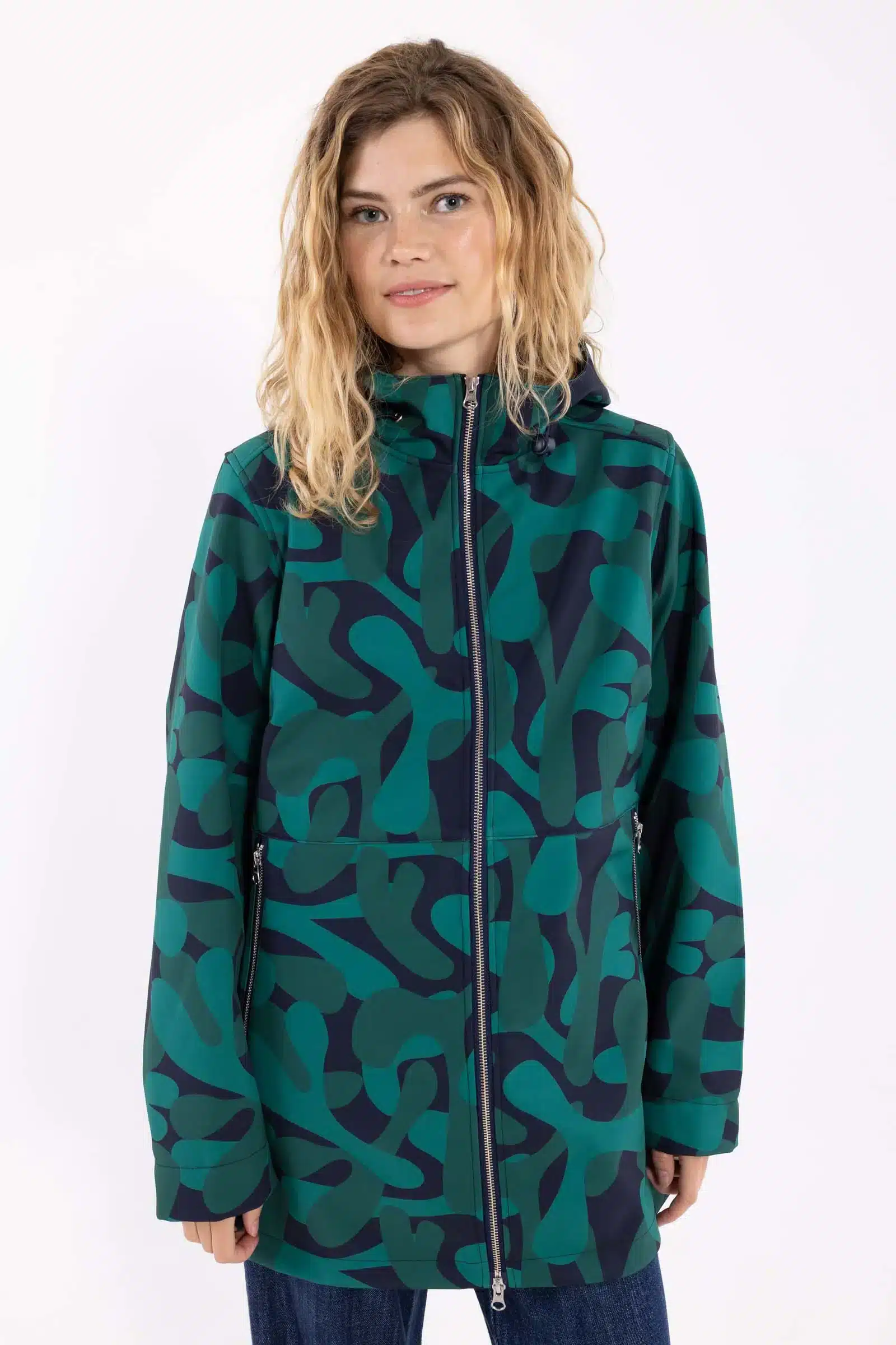 De Danelandscape Softshell Jacket is een praktische en comfortabele jas voor koelere lentedagen met regen en wind. Dit model combineert functionaliteit met een opvallend abstract dessin in groene en blauwe tinten, waardoor zelfs een grijze dag meteen wat kleur krijgt.