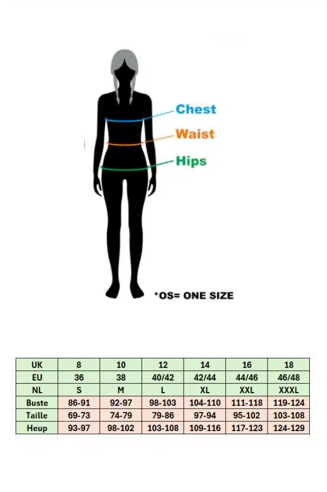 Maat en Pasvorm: De Danemix Top Navy valt op maat. Gebruik de maattabel om je perfecte maat te vinden: