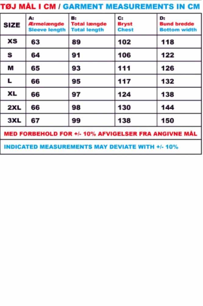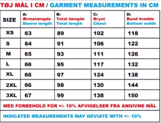 - Jaslengte: XS: 89 cm S: 91 cm M: 93 cm L: 95 cm XL: 97 cm XXL: 98 cm XXXL: 99 cm