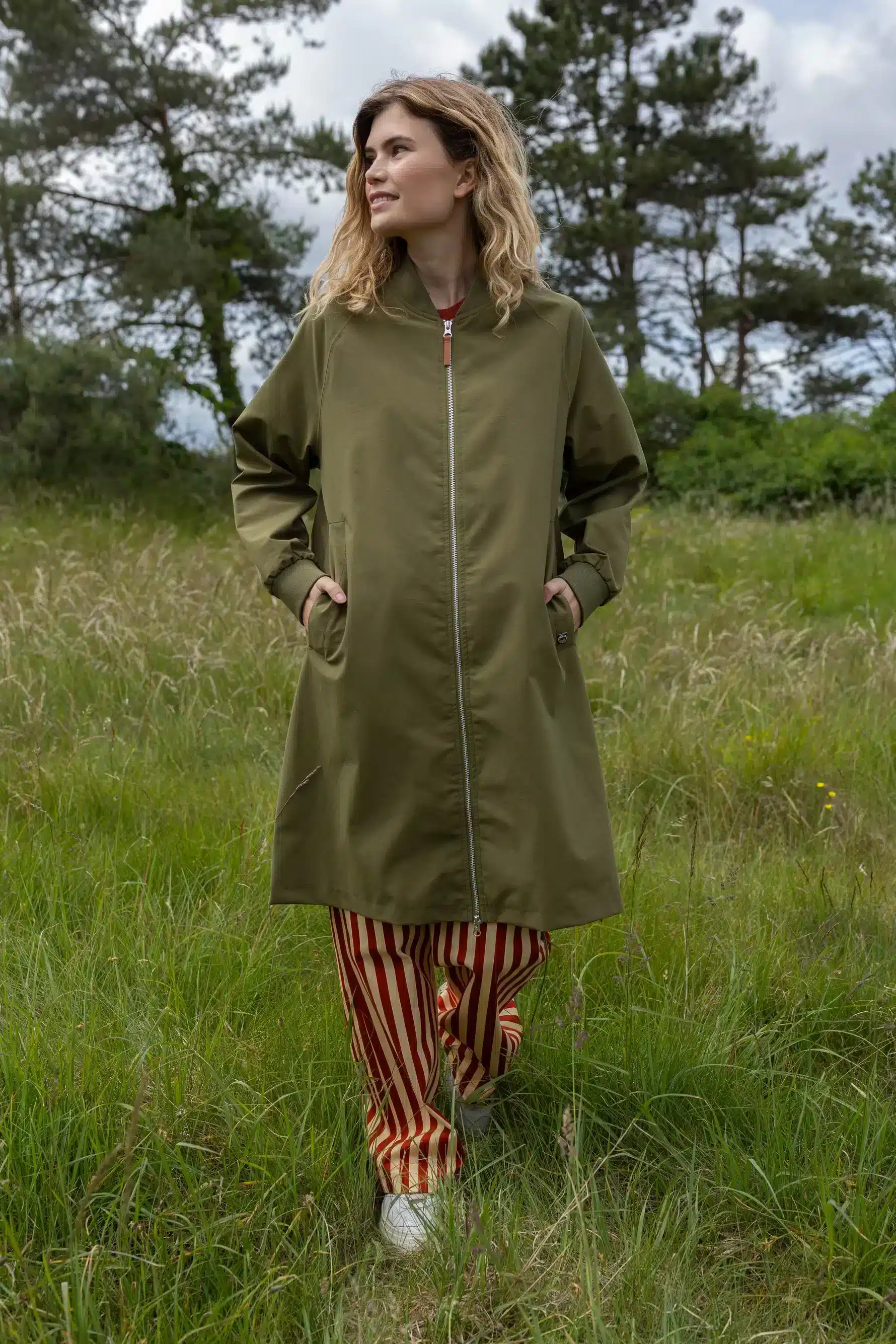 Deze jas is ontworpen voor het tussenseizoen, wanneer het weer onvoorspelbaar is en flexibiliteit belangrijk. De subtiele olijfgroene kleur maakt de jas tijdloos en makkelijk te combineren, terwijl de mooie voering aan de binnenzijde zorgt voor een verfijnd detail dat je pas ziet bij het dragen.