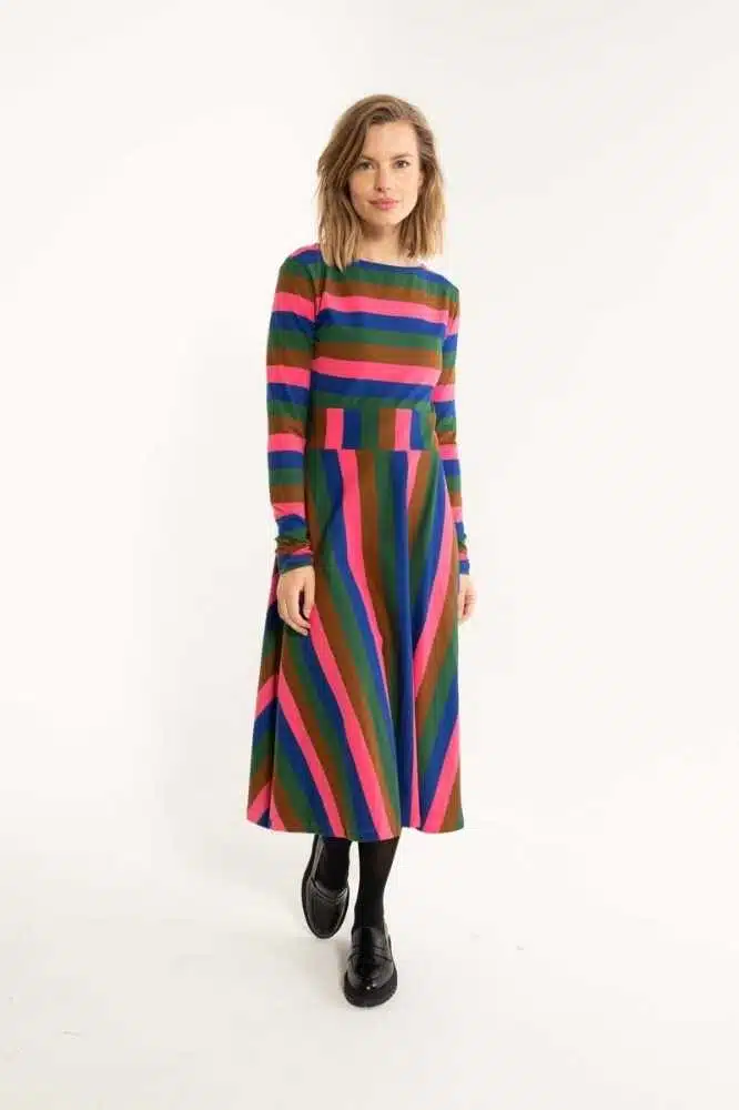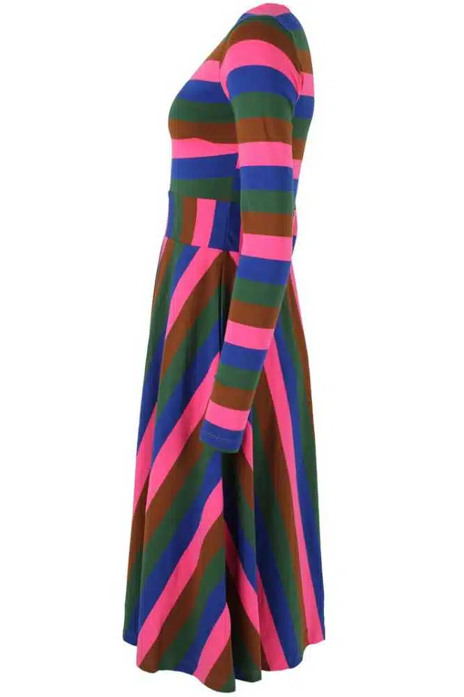De Danesigrid Dress is gemaakt van hoogwaardig, duurzaam katoen met een vleugje elastaan voor extra comfort. Het zachte jersey-materiaal voelt prettig aan op de huid, ideaal voor dagelijks gebruik. Danefae werkt uitsluitend met BSCI-gecertificeerde producenten, wat zorgt voor eerlijke arbeidsomstandigheden. De jurk is ook ontworpen om langdurig mooi te blijven, zelfs na meerdere wasbeurten, door te voldoen aan strenge chemische en duurzaamheidseisen.