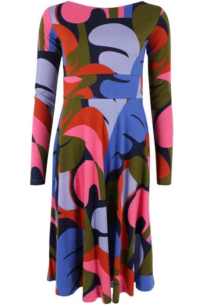 De Danesigrid Interlock Dress Dark Navy Trops van Danefæ is een prachtige, elegante jurk die perfect is voor zowel alledaags gebruik als feestelijke gelegenheden. Dankzij de flatterende pasvorm en het gebruik van hoogwaardige, duurzame materialen voelt deze jurk niet alleen heerlijk aan, maar blijft hij ook langdurig mooi. De jurk sluit mooi aan op het bovenlichaam, terwijl de rok een elegante, wijde pasvorm heeft die soepel meebeweegt.
