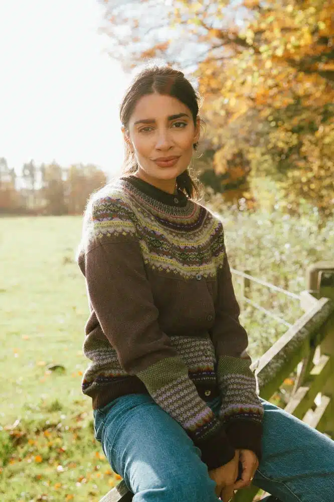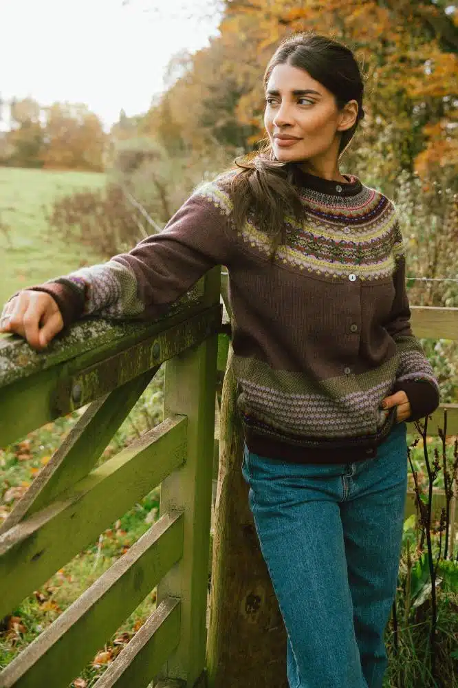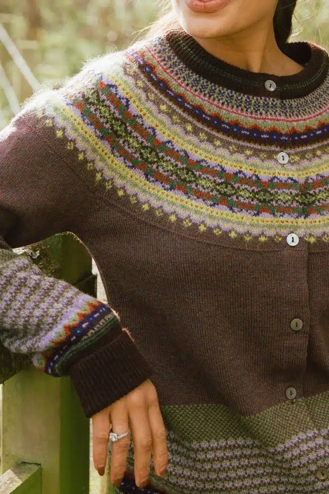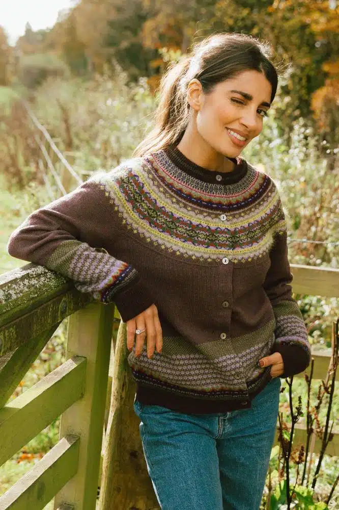 De Alpine Cardigan Heather van Eribé Knitwear is een iconisch kledingstuk dat vakmanschap en stijl perfect combineert. Dit prachtig ingebreide vest met een traditioneel Fair Isle-patroon is ontworpen om zowel warm als stijlvol te zijn. De licht aangesloten pasvorm, ronde hals met pas en de raglanmouwen geven het vest een klassieke uitstraling, terwijl de extra lange boorden zorgen voor extra comfort. Dankzij de doorknoopsluiting is het vest gemakkelijk te dragen en te combineren met verschillende outfits.