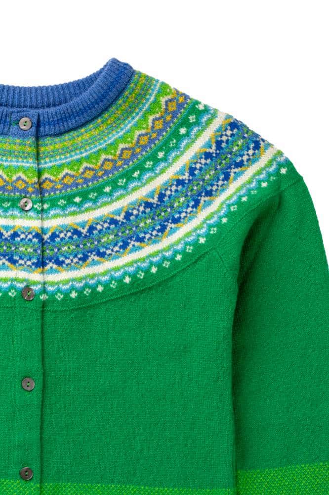 De Alpine Cardigan Luscious van Eribé Knitwear is een iconisch kledingstuk dat vakmanschap en stijl perfect combineert. Dit prachtig ingebreide vest met een traditioneel Fair Isle-patroon is ontworpen om zowel warm als stijlvol te zijn. De licht aangesloten pasvorm, ronde hals met pas en de raglanmouwen geven het vest een klassieke uitstraling, terwijl de extra lange boorden zorgen voor extra comfort. Dankzij de doorknoopsluiting is het vest gemakkelijk te dragen en te combineren met verschillende outfits.