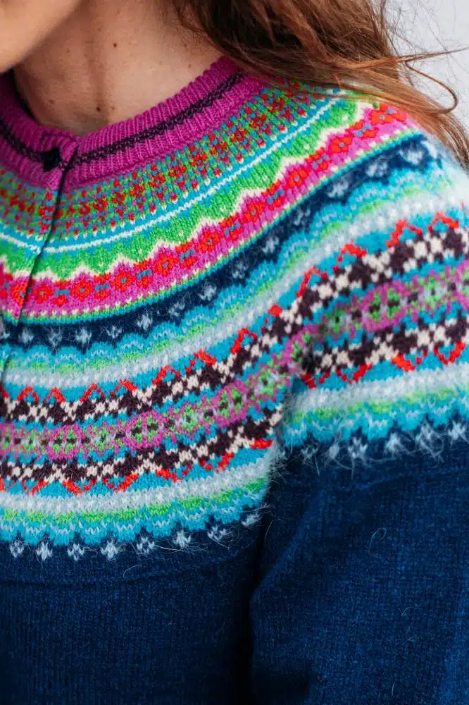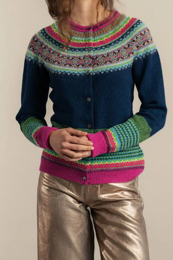 De Alpine Cardigan Tango van Eribé Knitwear is een iconisch kledingstuk dat vakmanschap en stijl perfect combineert. Dit prachtig ingebreide vest met een traditioneel Fair Isle-patroon is ontworpen om zowel warm als stijlvol te zijn. De licht aangesloten pasvorm, ronde hals met pas en de raglanmouwen geven het vest een klassieke uitstraling, terwijl de extra lange boorden zorgen voor extra comfort. Dankzij de doorknoopsluiting is het vest gemakkelijk te dragen en te combineren met verschillende outfits.