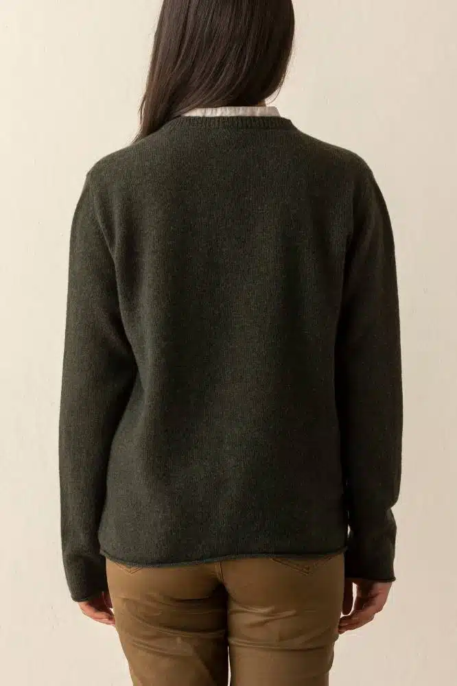 De Corry T-Shirt Sweater is gemaakt van 100% merino lamswol – een natuurlijke, hernieuwbare vezel die bekend staat om zijn zachtheid, ademend vermogen en lange levensduur. Wol is biologisch afbreekbaar en behoudt zijn kwaliteit jarenlang bij de juiste verzorging. Eribé Knitwear produceert in Schotland, waardoor transportafstanden beperkt blijven en lokale ambachten behouden blijven.