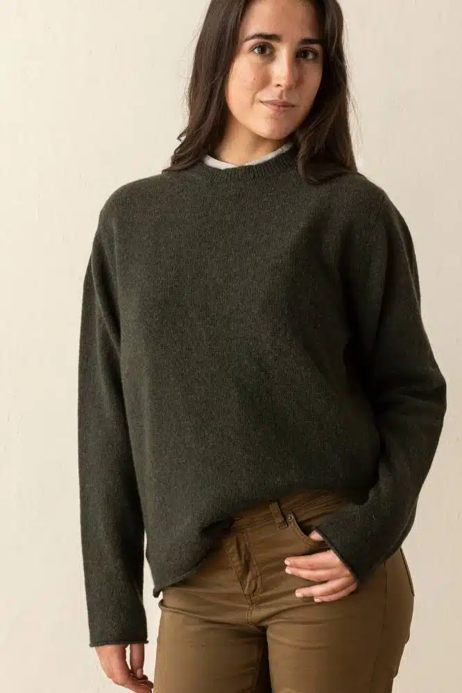 De Corry T-Shirt Sweater Seaweed van Eribé Knitwear is een verfijnde, lange mouw trui die de zachtheid en het comfort van een T-shirt combineert met de warmte en luxe uitstraling van fijngebreide wol. Dit model is gemaakt van 100% merino lamswol en voelt heerlijk soepel aan op de huid. De natuurlijke vezels zorgen voor uitstekende temperatuurregulatie, waardoor de trui zowel in koelere als milde omstandigheden comfortabel is.