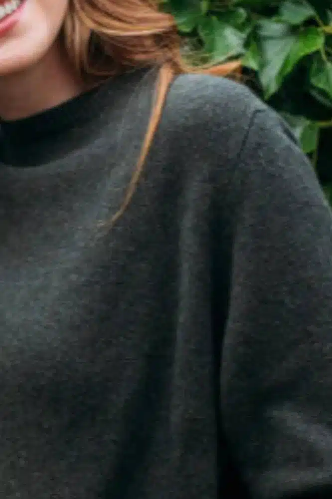 De sweater heeft een kleine ribboord aan de halslijn en geen boorden aan de mouwen of zoom, wat zorgt voor een ontspannen, vloeiende pasvorm. Het ontwerp is minimalistisch maar stijlvol, waardoor het een veelzijdige aanvulling is op je garderobe. De zachte seaweed-kleur – een rustige groenblauwe tint – maakt het eenvoudig te combineren met zowel neutrale als opvallende tinten.