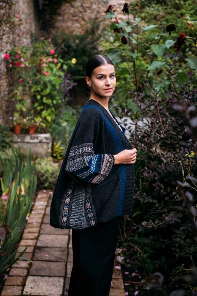 - Kenmerken: Diepe praktische zakken, Eribé Fairisle patroon met gradient kleurverandering