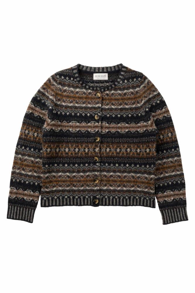 Eribé Knitwear is een Schots merk dat bekendstaat om zijn eigentijdse interpretaties van klassieke breistijlen, vooral Fairisle. Al sinds 1986 combineren zij traditioneel vakmanschap met innovatieve kleurcombinaties. Hun breisels worden vervaardigd in kleine oplages, met oog voor detail en een lange levensduur. Met de Westray Cardigan draag je niet alleen een kledingstuk, maar ook een stukje Schotse breihistorie.