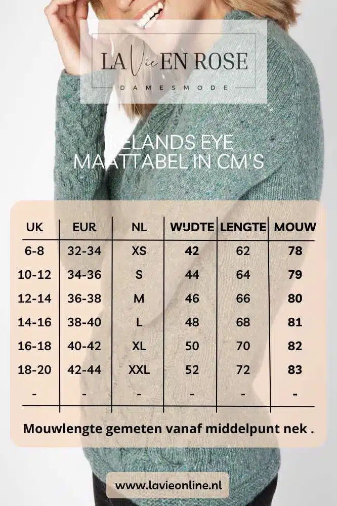 Irelands Eye is een toonaangevend Iers modemerk dat bekend staat om zijn hoogwaardige breisels en tijdloze ontwerpen geïnspireerd door de prachtige landschappen en rijke tradities van Ierland. Sinds de oprichting in de jaren ’60 heeft Irelands Eye zich toegelegd op het creëren van kledingstukken van de hoogste kwaliteit, met aandacht voor vakmanschap en detail. Het merk combineert traditionele breitechnieken met eigentijdse ontwerpelementen, resulterend in collecties die zowel klassiek als eigentijds zijn. Irelands Eye hecht ook veel waarde aan duurzaamheid en ethische productie, wat blijkt uit hun gebruik van hoogwaardige natuurlijke materialen en hun betrokkenheid bij lokale gemeenschappen in Ierland.