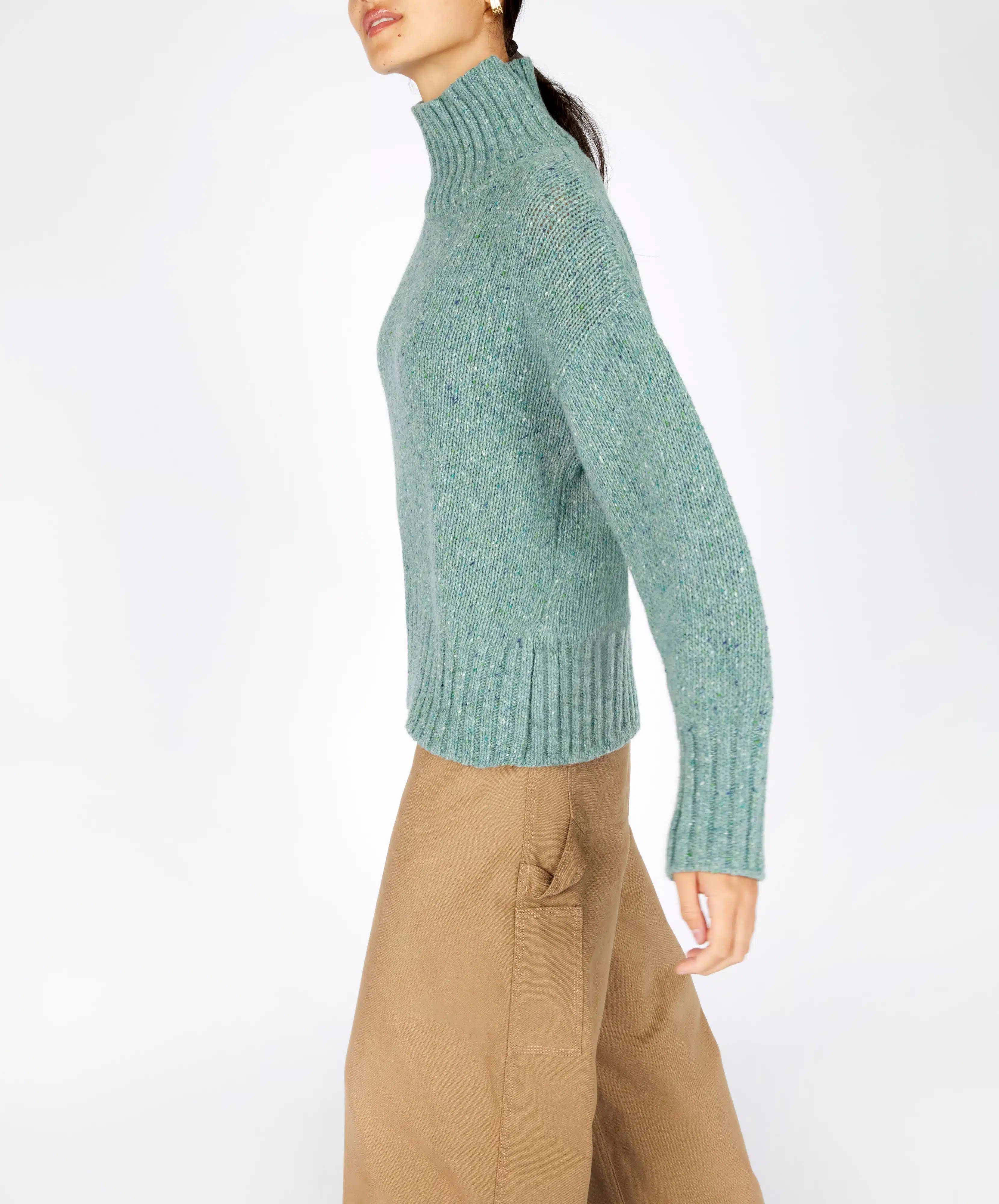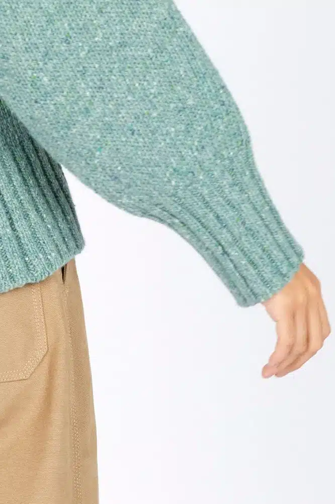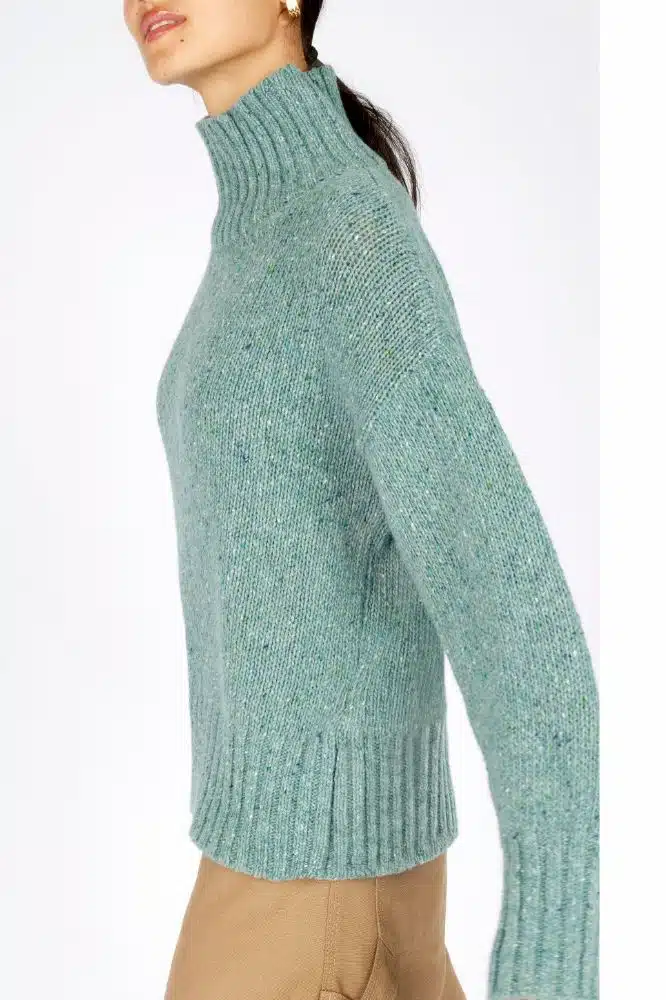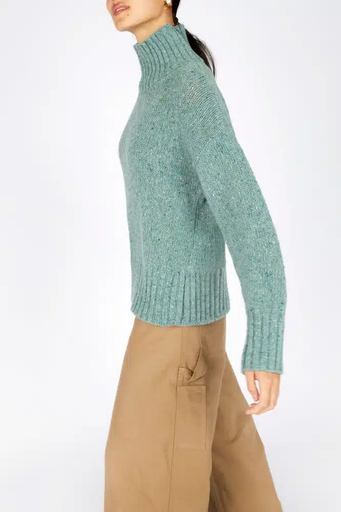 De Paige Polo Neck van IrelandsEye in de kleur Ocean Mistis een luxueus en comfortabel gebreid kledingstuk dat vakmanschap en tijdloze elegantie samenbrengt. Deze stijlvolle coltrui maakt deel uit van de Genesis-collectie en is vervaardigd van 100% natuurlijke garens: een premium blend van 95% wol en 5% cashmere. Dat zorgt voor een heerlijk zachte feel en een rijke, hoogwaardige uitstraling. De kleur Ocean Mist is een levendige zachtgroene tint met speelse, veelkleurige spikkels – subtiel en uniek tegelijk.