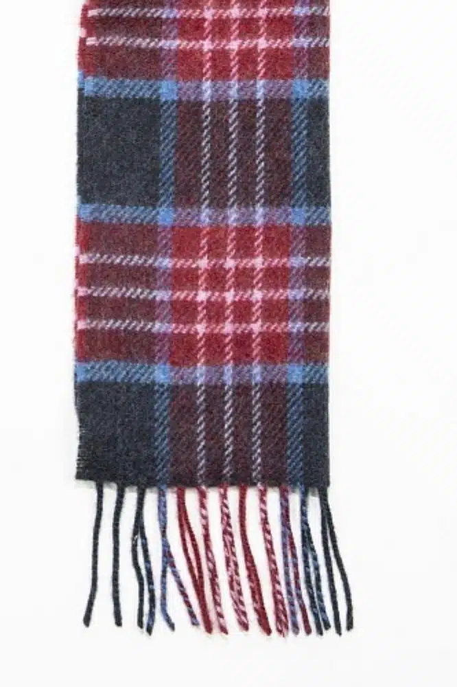 John Hanly Irish Wool Scarf Long Burgundy Denim Navy Plaid