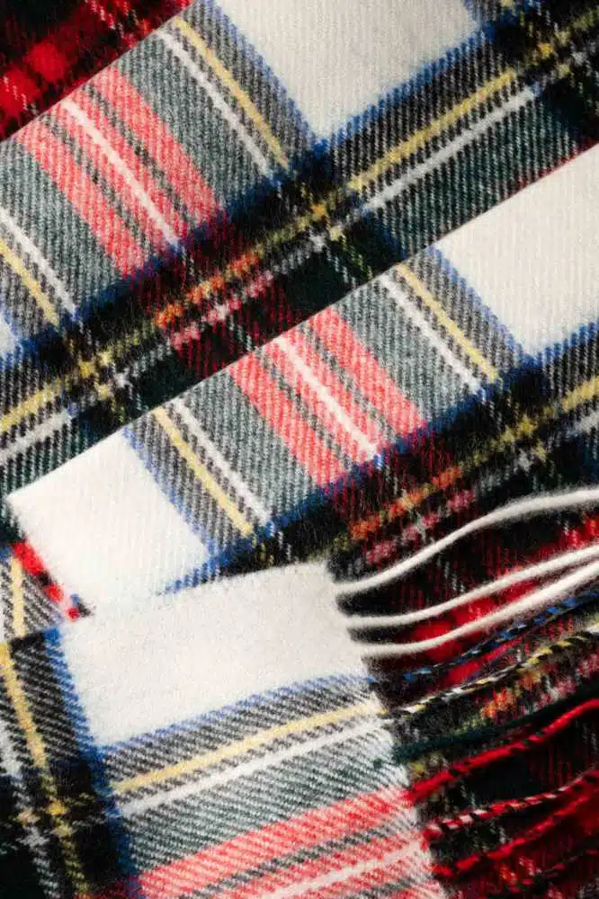 Details – John Hanly Merino Luxury Wool Scarf 152 Dress Stewart Tartan