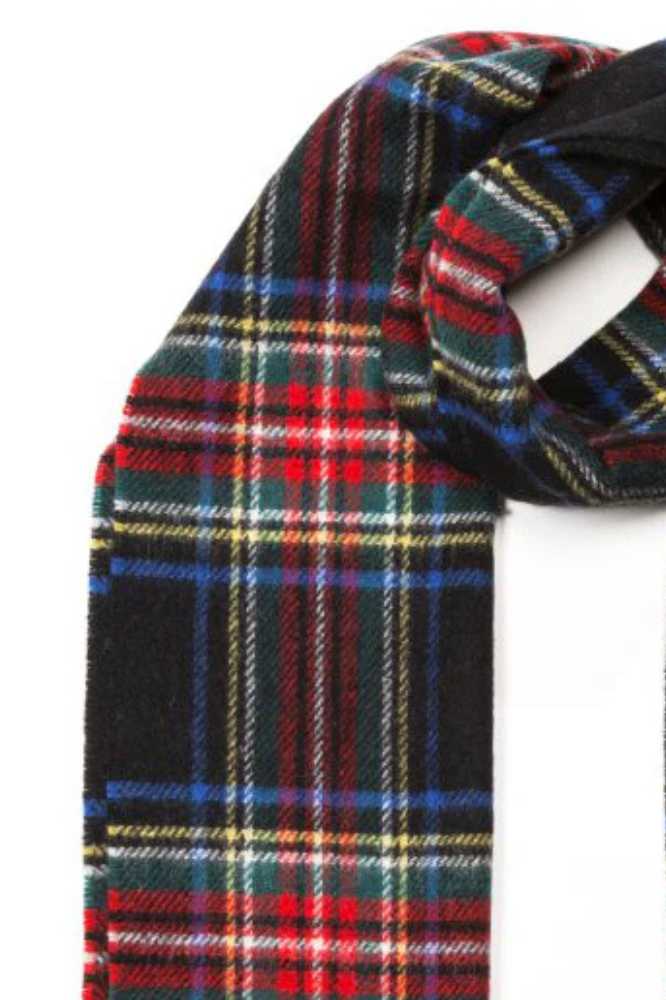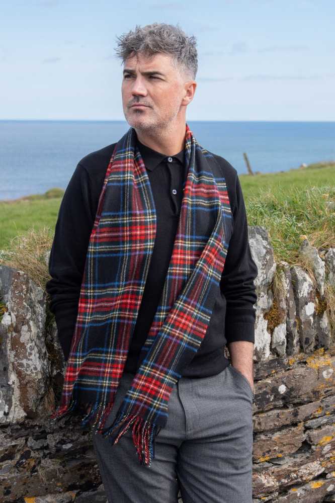 Details – John Hanly Merino Luxury Wool Scarf 156 Black Stewart Tartan
