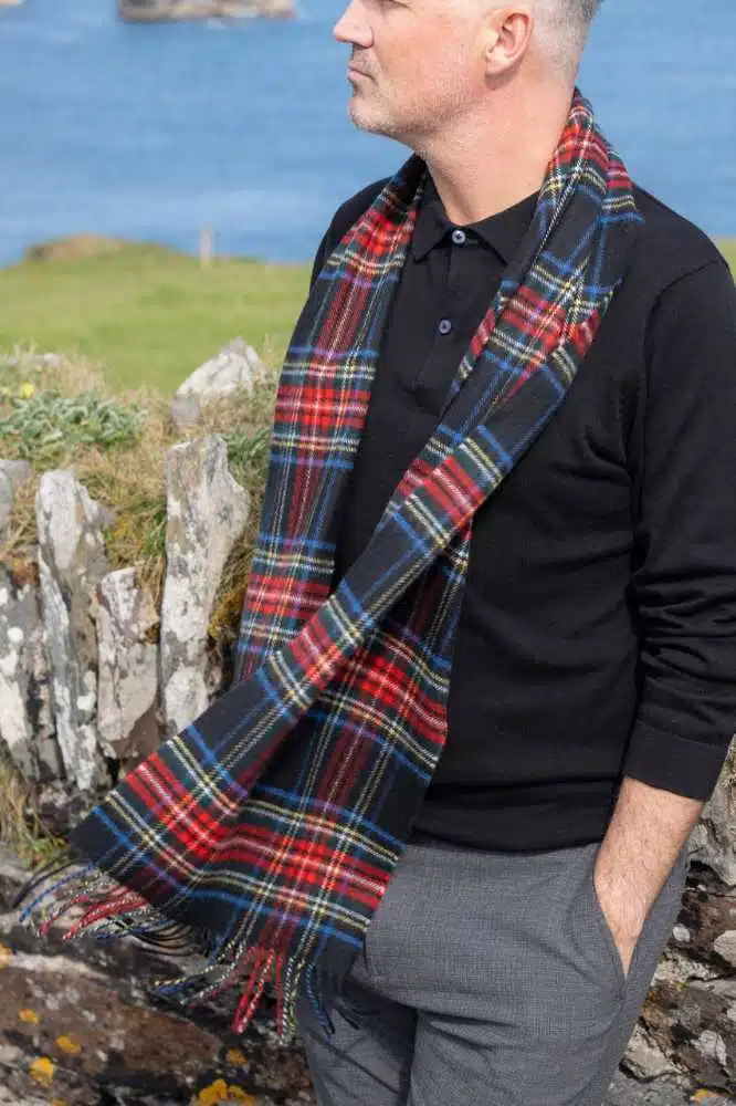 John Hanly Merino Luxury Wool Scarf 156 Black Stewart Tartan