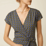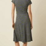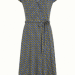 De V-hals en kapmouwen maken haar flatterend en zomers. De knoopriem accentueert subtiel de taille en geeft vorm zonder te knellen. De knielange lengte en slightly flared rok zorgen voor een vrouwelijke beweging bij elke stap. Dankzij de jerseykwaliteit met stretch draagt de jurk soepel en comfortabel.