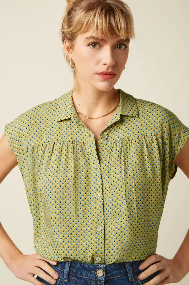 De klassieke blousekraag en knoopsluiting houden het model tijdloos. De kapmouwen geven de blouse een zomers karakter en zorgen voor een zachte lijn langs de schouders. Dankzij de regular fit valt de blouse soepel om het lichaam. De geweven stof zonder stretch zorgt voor een mooie, natuurlijke beweging.