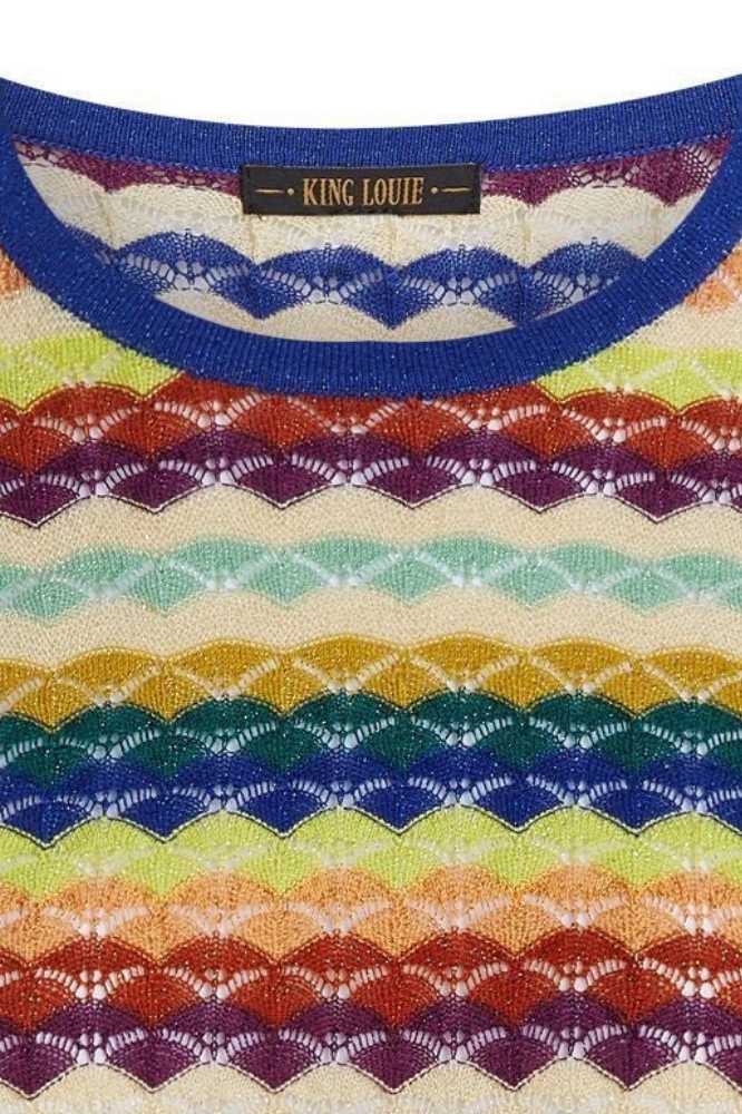 De Bell Top Rise Cream van King Louie is een prachtige combinatie van retro charme en moderne duurzaamheid. Deze top is ontworpen voor vrouwen die comfort willen combineren met stijl. De aangesloten pasvorm benadrukt subtiel het silhouet, terwijl het speelse zigzagpatroon met glitters een elegante uitstraling geeft. De klokmouwen en ronde halslijn voegen een vleugje vintage glamour toe, wat dit kledingstuk perfect maakt voor zowel casual als feestelijke gelegenheden. Gemaakt van een zachte, rekbare jersey stof, is deze top een stijlvolle keuze die je de hele dag comfortabel houdt.