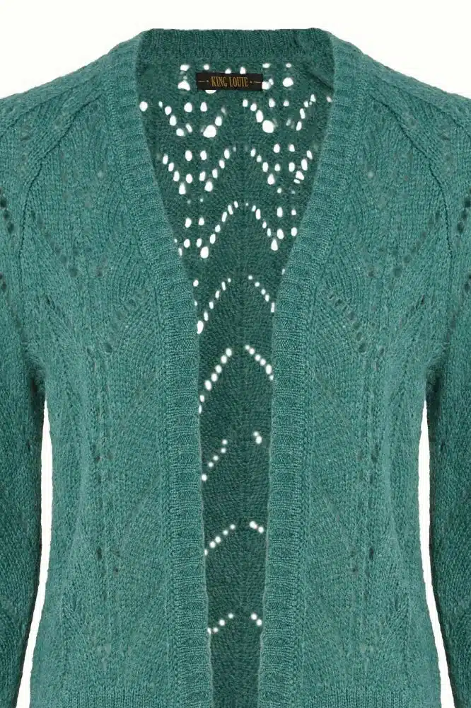 King Louie is een Amsterdams merk dat bekendstaat om zijn vintage-geïnspireerde ontwerpen met een moderne twist. Ze combineren kleur, prints en vrouwelijke pasvormen met aandacht voor duurzaamheid en eerlijke productie. De Blanca Cardi weerspiegelt deze visie: eigentijds, comfortabel en met zorg gemaakt.