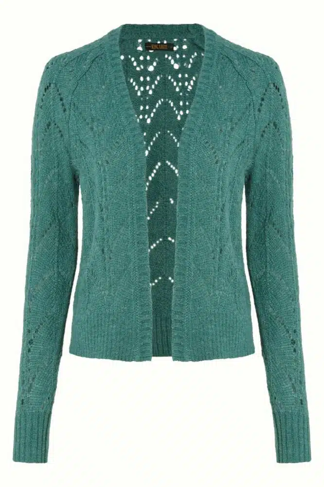 De Blanca Cardi Orcia Smoke Green van King Louie is hét kledingstuk voor wie warmte, comfort en stijl moeiteloos wil combineren. Deze opengebreide cardigan is uitgevoerd in een zachte, fluffy knit met een rijke, grijsgroene tint die prachtig staat bij zowel neutrale als kleurrijke outfits. De royale fit, raglanmouwen en ribgebreide afwerking geven de Blanca een nonchalant-chique uitstraling, ideaal om als laagje te dragen op koudere dagen.
