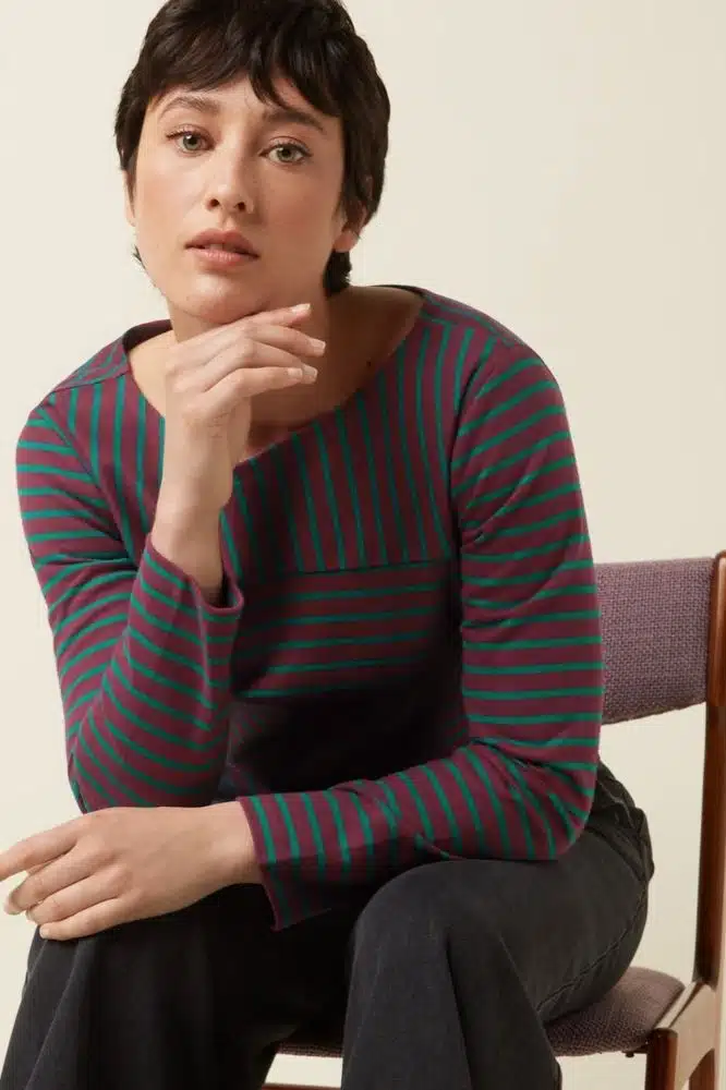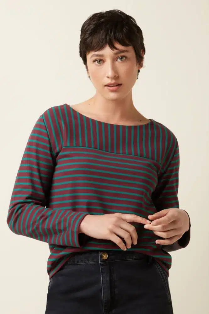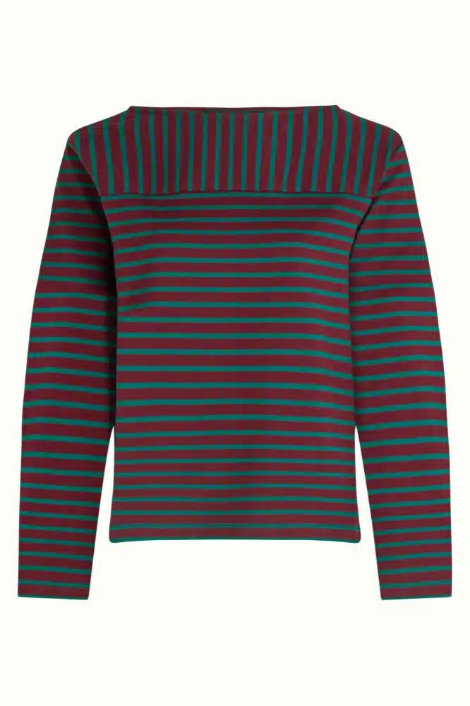 Product Care Boatneck Yoke Top Britney Stripe Porto Red