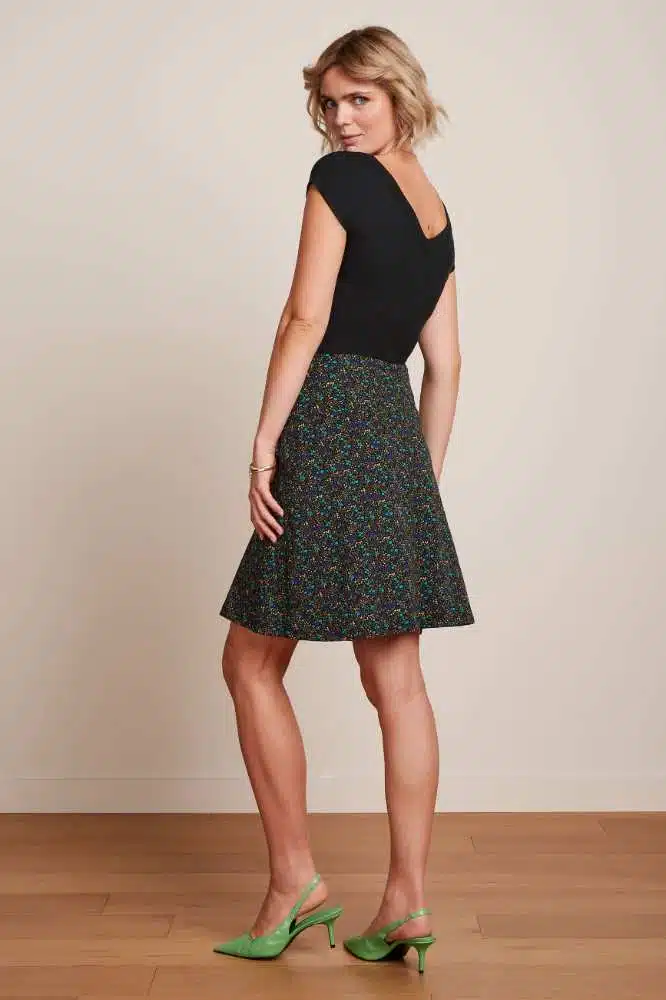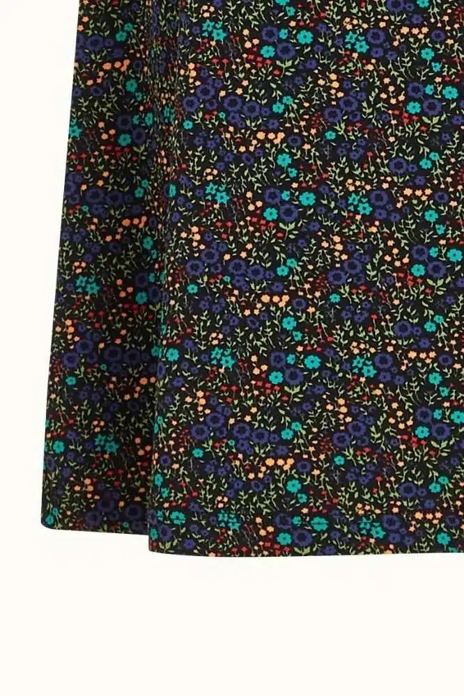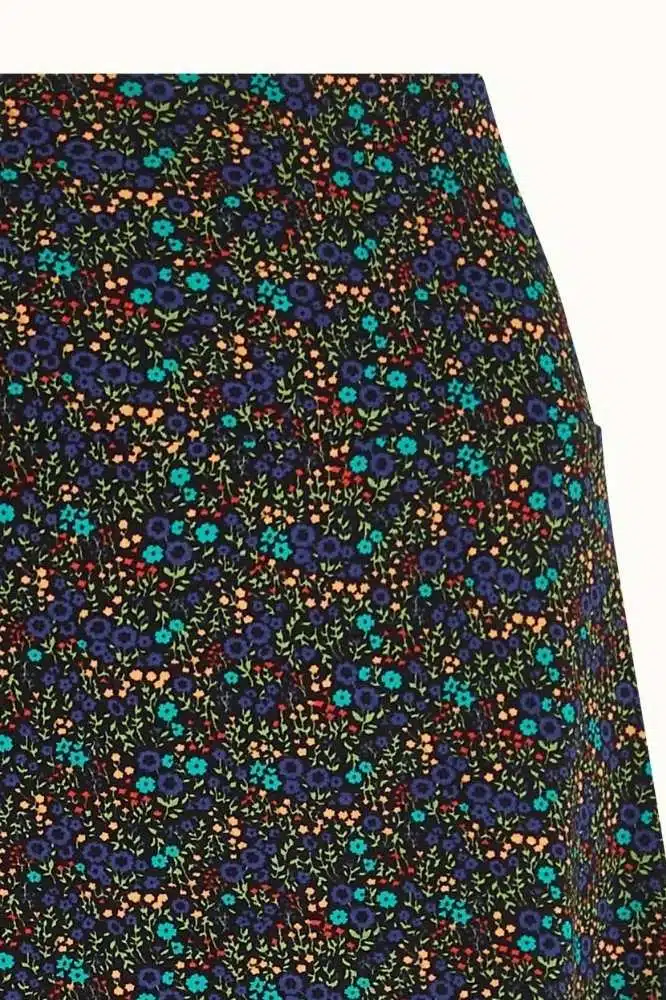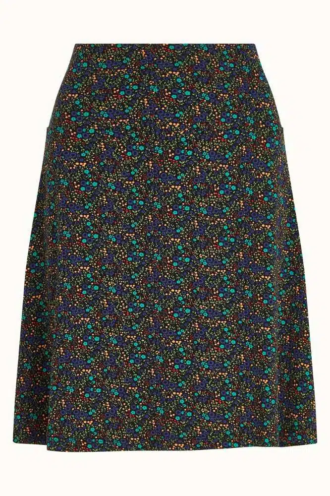 De Border Skirt Elysee Black van King Louie is een prachtige A-lijn rok met een elegante uitstraling en een speelse bloemenprint. Deze knie-lange rok heeft een flatterende, uitlopende pasvorm en een brede elastische tailleband die zorgt voor optimaal draagcomfort. De stretchstof beweegt soepel met je mee, waardoor de rok perfect is voor dagelijks gebruik én speciale gelegenheden.