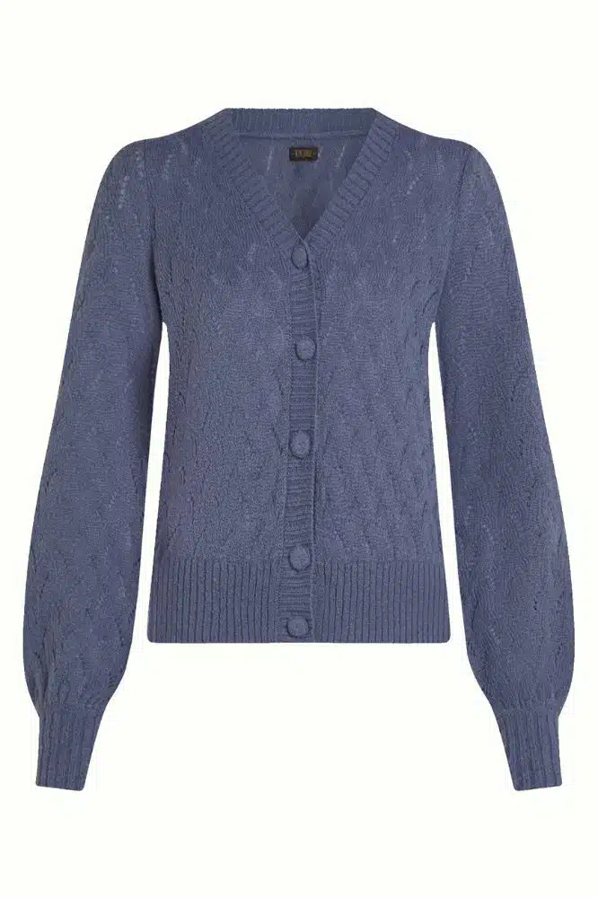 Klik hier voor alle King Louie vesten. • SKU / ProductID: 09052001 • Model draagt: maat S, lengte 1,65 m • Pasvorm: regular fit • Lengte: heuplengte • Materiaal: 55% acryl, 30% nylon, 10% wol, 5% mohair • Mouwen: lange mouwen • Halslijn: V-hals • Sluiting: knopenrij aan de voorzijde • Kleur: blauw • Seizoen: herfst/winter