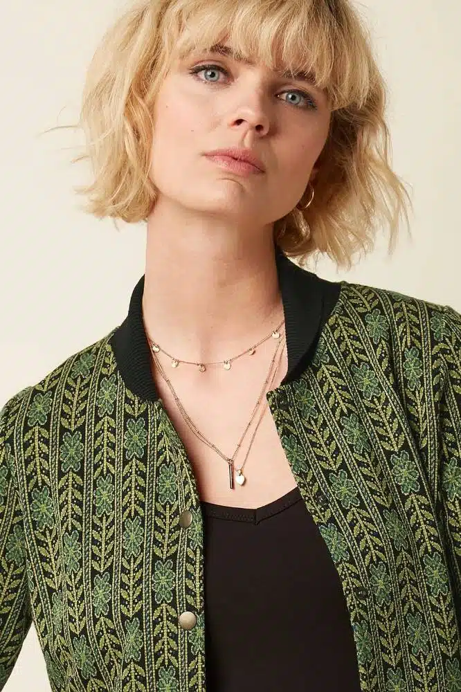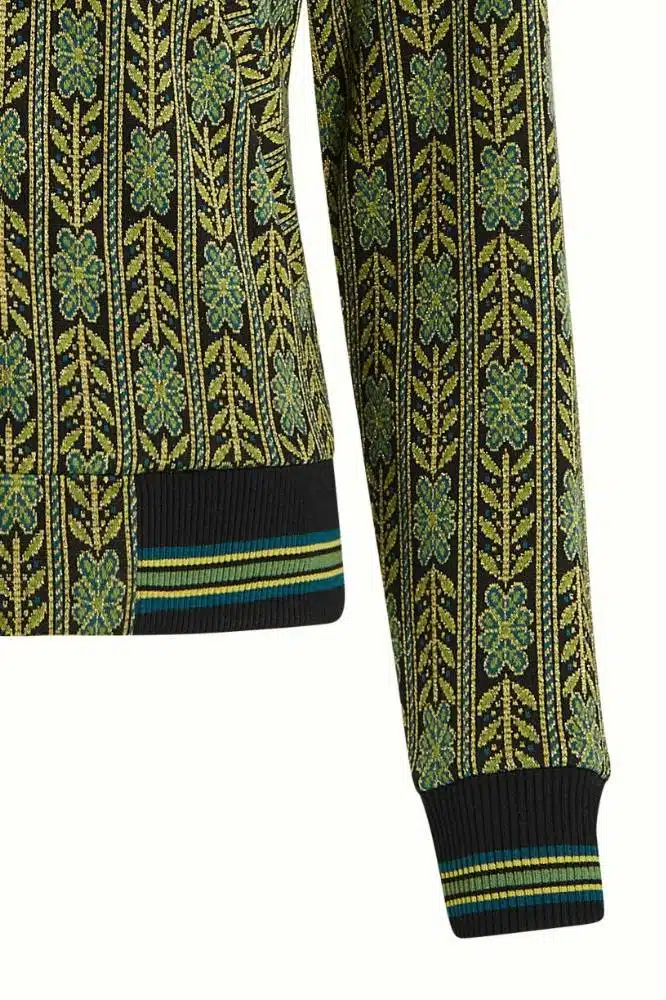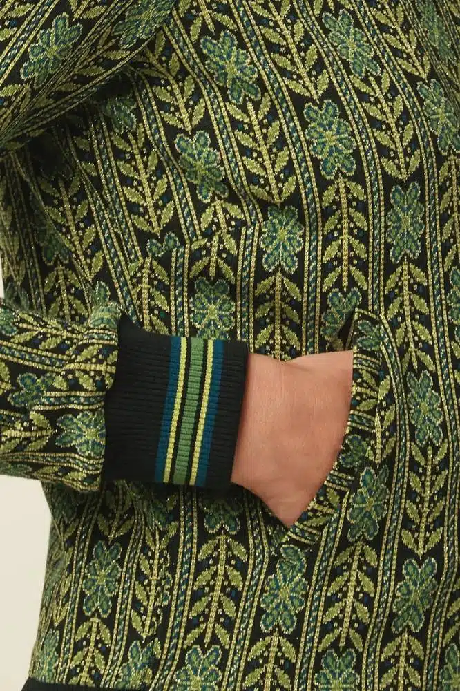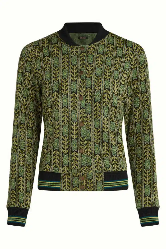 De Cleo Jacket Dumas van King Louie is een opvallend, stijlvol jasje dat direct de aandacht trekt dankzij de rijke jacquardstructuur en sprankelende details. Het jasje is ontworpen in een comfortabele knit jacquard met een vleugje glitter, wat zorgt voor een speelse en chique uitstraling. Het grafische dessin geeft het geheel karakter, terwijl de regular fit en de lichte stretch in de stof ervoor zorgen dat dit item prettig draagt en mooi in vorm blijft.