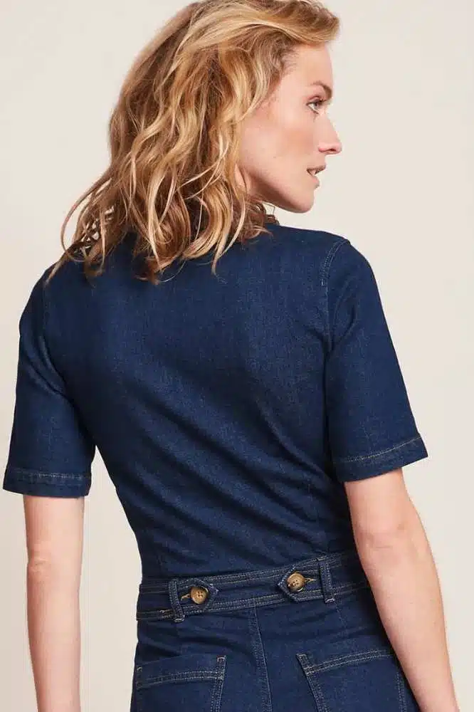 De Flare Jumpsuit in Onyx Denim Deep Blue van King Louie is een eigentijdse ode aan vrouwelijke elegantie met een stoere twist. Deze flatterende jumpsuit combineert het comfort van stretch met een krachtige, uitlopende pasvorm die je figuur prachtig accentueert. Het stevige maar soepele twillweefsel van biologisch katoen zorgt voor een hoog draagcomfort én een duurzame keuze, zonder in te leveren op stijl.
