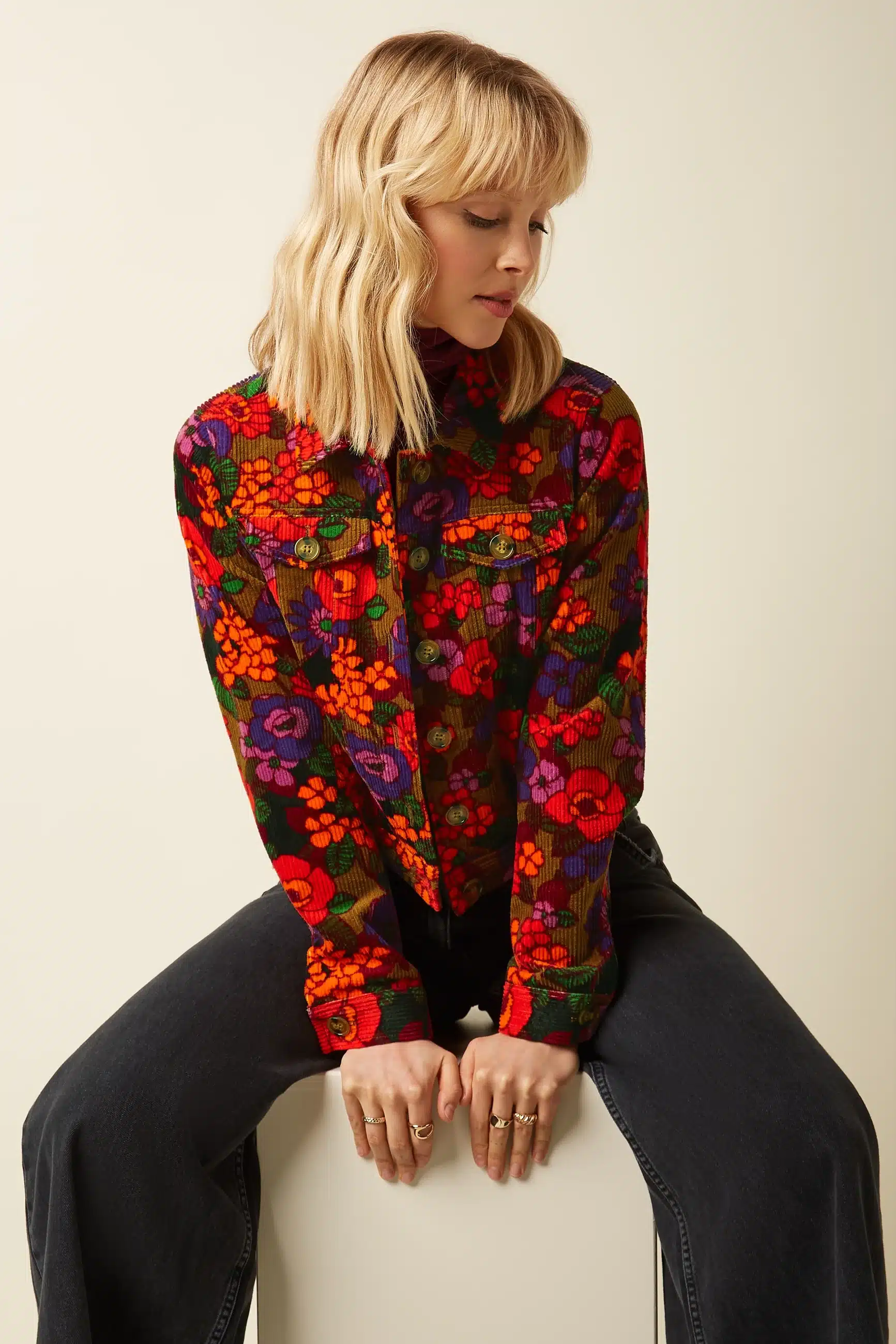 De Janey Cropped Jacket Ramone van King Louie is een echte blikvanger. Met zijn opvallende bloemenprint, korte lengte en flatterende pasvorm is dit jasje de perfecte combinatie van speels en stijlvol. De cropped fit valt tot net boven de heup en zorgt voor een moderne, vrouwelijke uitstraling die ideaal is om te dragen over een jurk of een hoge taille broek.