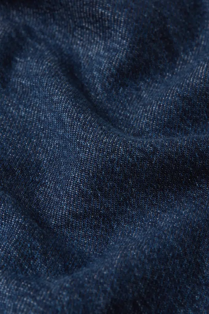 De stof is gemaakt van circulaire katoenvezels en heeft geen stretch, wat zorgt voor een authentiek denimgevoel en een duurzame kwaliteit. De regular fit valt mooi recht en comfortabel, zonder strak te zitten. De klassieke kraag en lange mouwen geven het ontwerp een rustige, verzorgde uitstraling, terwijl de voorzakken het geheel praktisch en draagbaar maken.