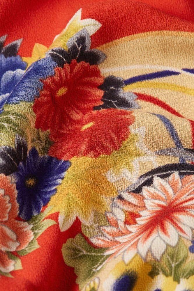 Deze top is ontworpen voor wie houdt van tijdloze vrouwelijkheid met een moderne knipoog. De licht glanzende stof geeft een luxe uitstraling en voelt luchtig aan op de huid. De vaste ceintuur is aan de zijkanten bevestigd en kan aan de voor- of achterkant gestrikt worden, afhankelijk van jouw voorkeur. Het bloemenmotief in warme tinten zorgt voor een verfijnde, levendige touch, zonder te overheersen.