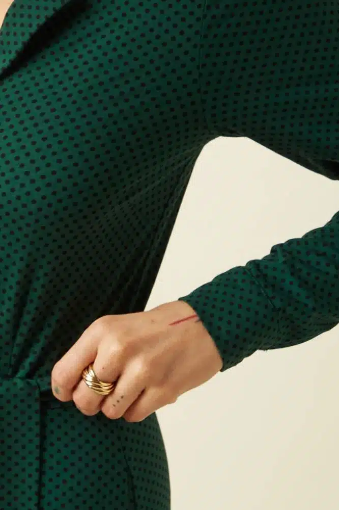 Klik hier voor alle King Louie jurken. • ProductID / SKU: 10110219 • Seizoen: W25 • Gemaakt in: Türkiye • Fabrikant: Hivateks Insaat San. Ve. Dis Tic. A.S. • Model: draagt maat S, lengte 1,65 m • Lengte: midi • Pasvorm: flared, met ceintuur • Sluiting: knoopsluiting voorzijde • Halslijn: lapel collar (reverskraag) • Mouwen: lange mouwen • Materiaal: Stretch van 95% LENZING™ ECOVERO™ viscose, 5% elastaan • Print: polkadot