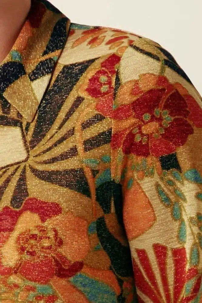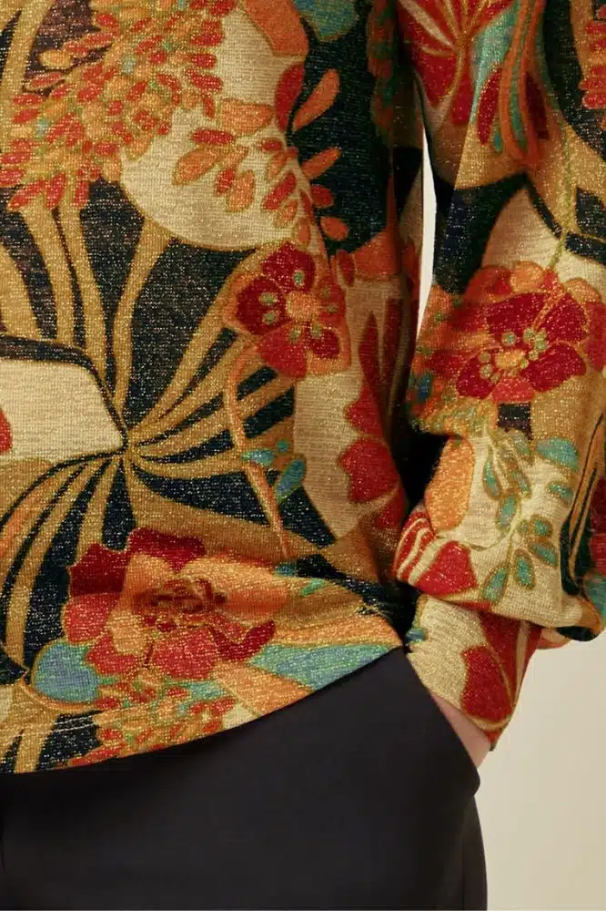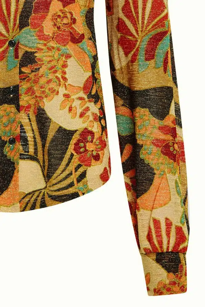 • SKU / ProductID: 10161001 • Model draagt: maat S, lengte 1,70 m • Pasvorm: aansluitende fit met stretch • Halslijn: klassieke kraag • Mouwen: lange mouwen • Sluiting: knoopsluiting voorzijde • Materiaal: 71% polyester, 24% lurex, 5% elastaan • Kleur & print: bloemenprint met lichte glans • Seizoen: wintercollectie • Gemaakt in: Türkiye • Onderhoud: fijne was op 30 °C, binnenstebuiten wassen