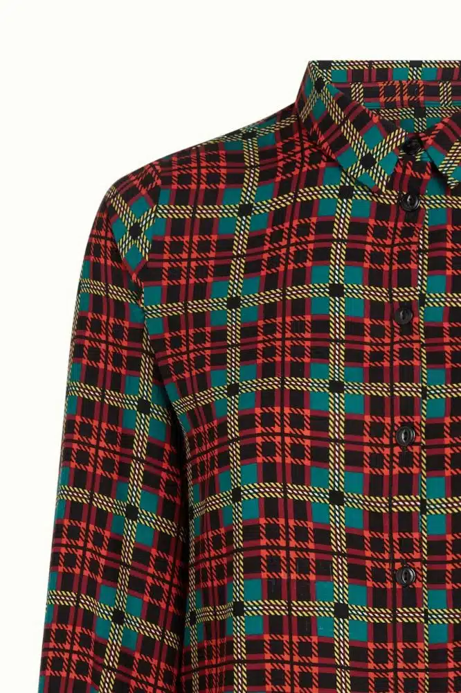 • SKU / ProductID: 10016001 • Model draagt: maat 36, lengte 1,72 m • Pasvorm: rechtvallend, regular fit • Lengte: heuplengte • Halslijn: klassieke kraag • Sluiting: knopenrij aan de voorzijde • Mouwen: lange mouwen • Materiaal: 100% LENZING™ ECOVERO™ viscose • Stof: geweven, non-stretch • Print: geruit (checkered) • Gemaakt in: China • Seizoen: W25