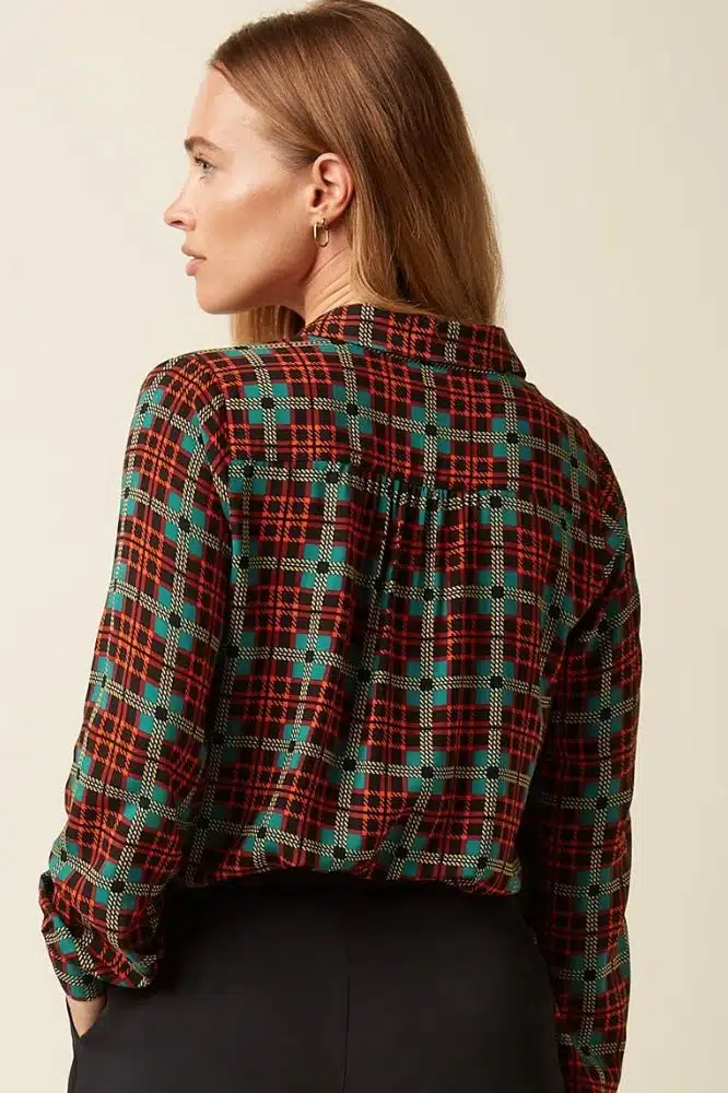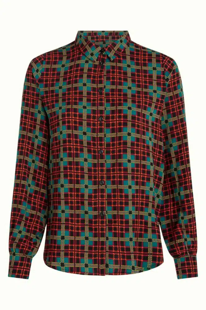 De Maisie Blouse Duna van King Louie is een moderne klassieker met een knipoog naar vintage. Het stijlvolle ruitpatroon in zachte, warme tinten maakt deze blouse tot een veelzijdig item dat je moeiteloos draagt op zowel een werkdag als een casual weekenddag. Dankzij de klassieke kraag, lange mouwen en rechte knoopsluiting oogt de blouse netjes, maar nooit stijf. De soepele stof zorgt daarbij voor een comfortabele fit die mooi meevalt rond het lichaam.