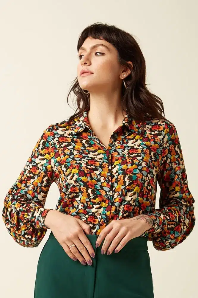 • SKU / ProductID: 10096999 • Model draagt maat S, lengte 1,65 m • Pasvorm: aangesloten fit • Lengte maat S: ca. 60 cm • Halslijn: klassieke kraag • Mouwen: lange mouwen • Sluiting: knoopsluiting voorzijde • Materiaal: 95% LENZING™ ECOVERO™ viscose, 5% elastaan • Kleur: Mauve met bloemenprint • Gemaakt in: Türkiye • Seizoen: W25 • Onderhoud: fijnwas 30°C, plat drogen
