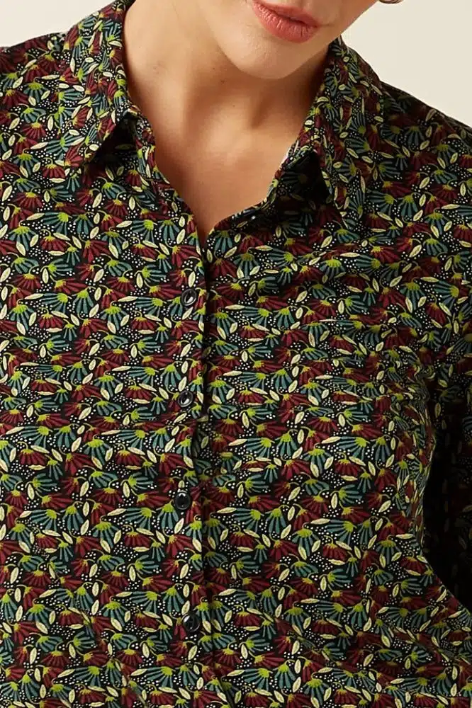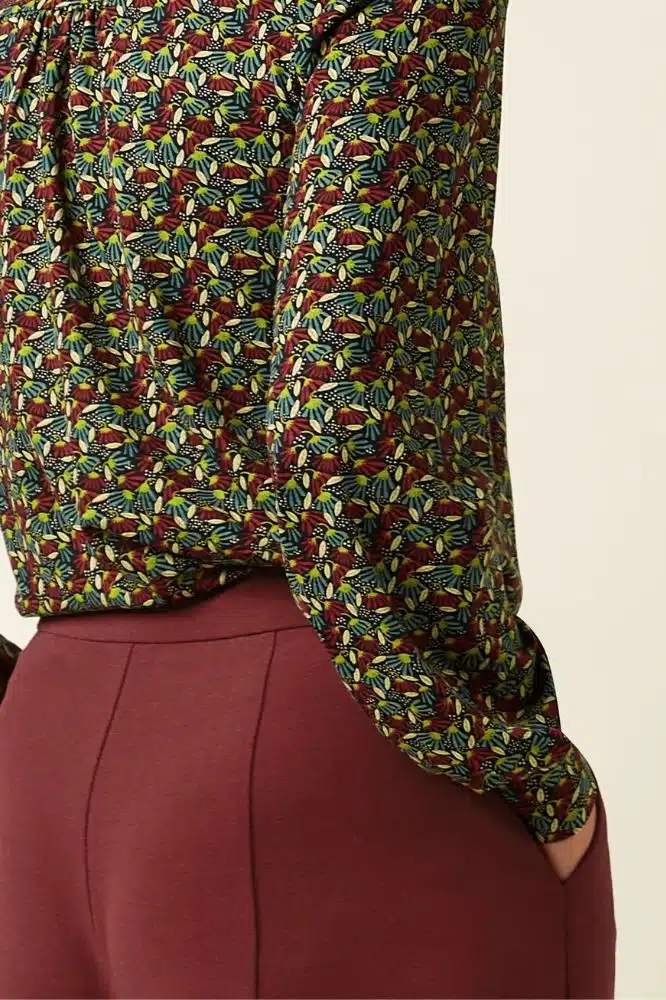 Deze blouse is onderdeel van de najaarscollectie, maar dankzij het materiaal en design is het een item dat je makkelijk het hele jaar door draagt. De diepe, warme tinten in de bloemenprint combineren mooi met herfstkleuren, maar ook met lichte neutrale tinten in het voorjaar.