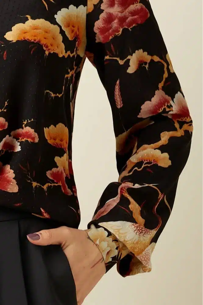 De Maisie Blouse Neve is gemaakt van een mix van viscose en LENZING™ ECOVERO™ viscosevezels. Deze vezels zijn afkomstig van gecontroleerde en gecertificeerde houtbronnen en worden geproduceerd met een aanzienlijk lagere impact op het milieu. Zo is er minstens 50% minder water- en energieverbruik in vergelijking met conventionele viscose. Het resultaat is een zachte, ademende stof die lang mooi blijft en een bewuste keuze vormt zonder dat de nadruk op duurzaamheid overheerst.
