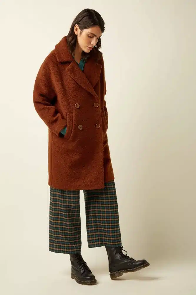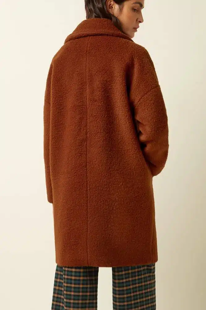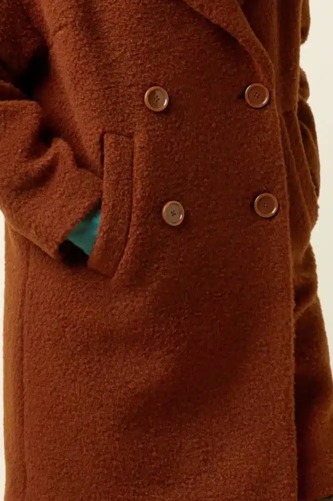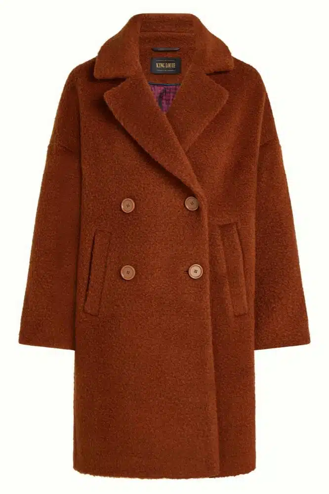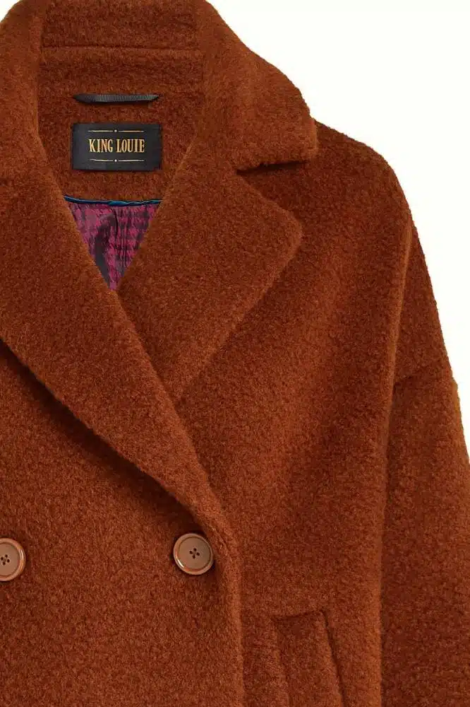 De Nia Coat Nerlino Patina Brown van King Louie is een prachtig vormgegeven mantel die elegantie en draagcomfort combineert. Deze double-breasted coat in een luxe wolblend is ontworpen om je warm te houden, zonder in te leveren op stijl. De verfijnde details – zoals de dubbele knoopsluiting, de klassieke reverskraag en de schuine steekzakken – maken dit een tijdloze jas die moeiteloos aansluit bij zowel casual als meer formele outfits.