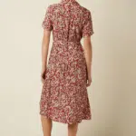 De blousekraag en knoopsluiting geven een klassiek karakter, terwijl de knoopriem de taille subtiel accentueert. De korte mouwen houden het luchtig en draagbaar. De licht uitlopende rok (slightly flared) valt in een mooie midi lengte en beweegt soepel met je mee. Dankzij de zijzakken is ze niet alleen stijlvol, maar ook praktisch.