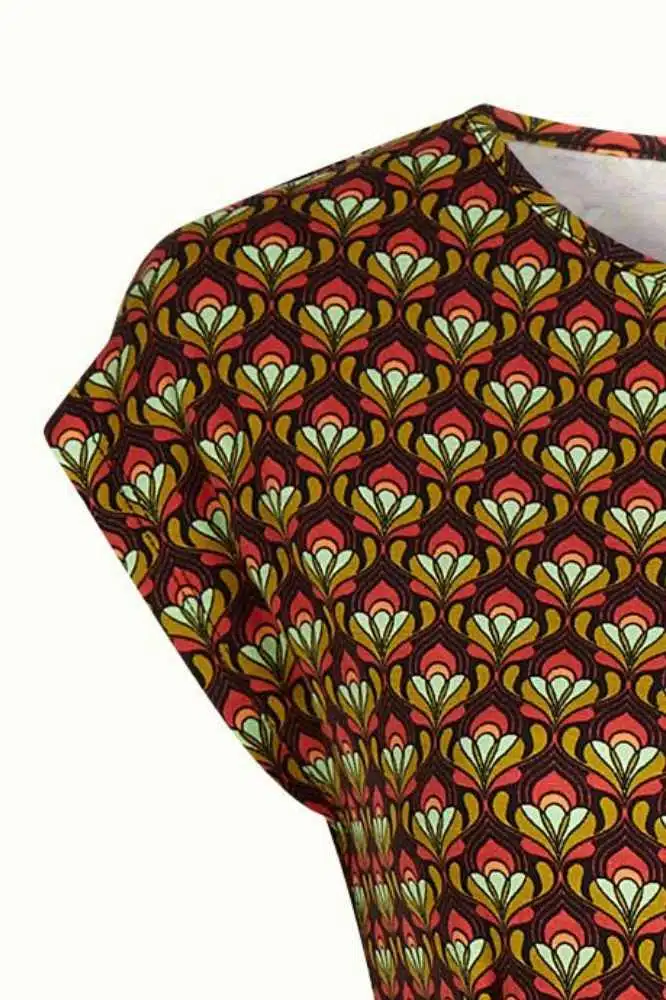 De Rose Dress Toulouse Black is een tijdloze en stijlvolle jurk van King Louie, perfect voor elke gelegenheid. Met een aangesloten pasvorm, korte kapmouwen en een rechte halslijn straalt deze jurk elegantie uit. De vaste tailleband benadrukt het silhouet, terwijl de praktische steekzakken een speelse en functionele touch toevoegen. Gemaakt van zachte jersey met stretch en een unieke grafische print, biedt deze jurk ultiem draagcomfort en een vleugje retrostijl. Ideaal voor werk, een diner of een dagje uit. De Rose Dress is een rechter vallend model, met een rechte rok.