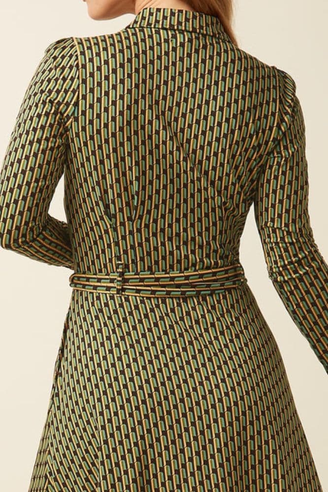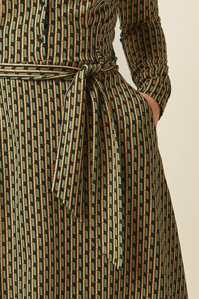 • Pasvorm: getailleerd met uitlopende rok (flared)