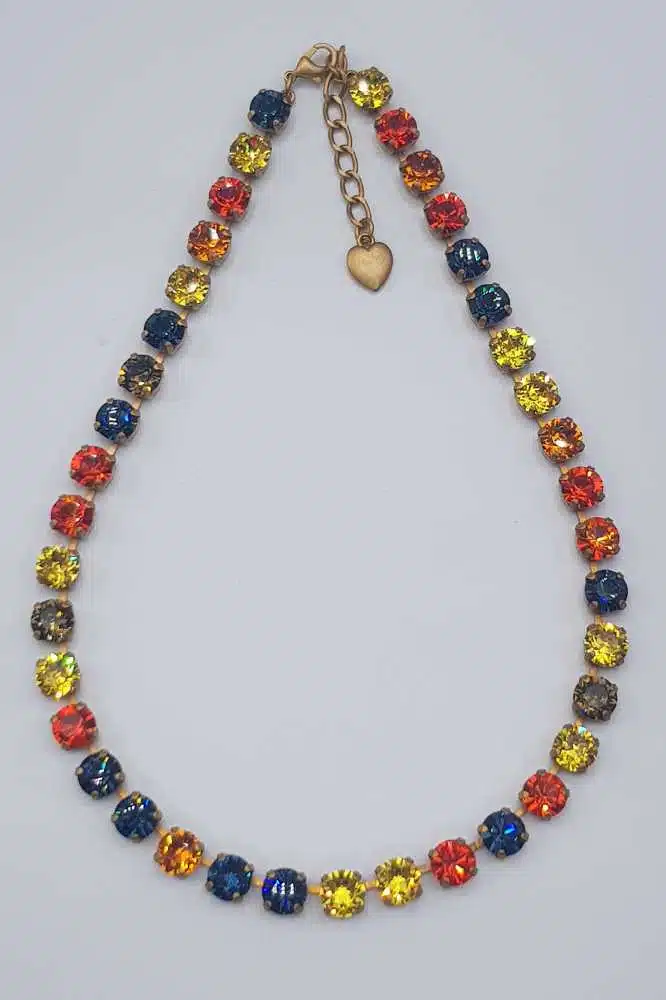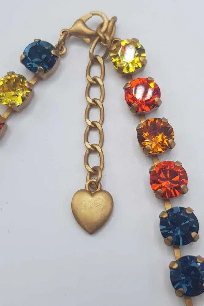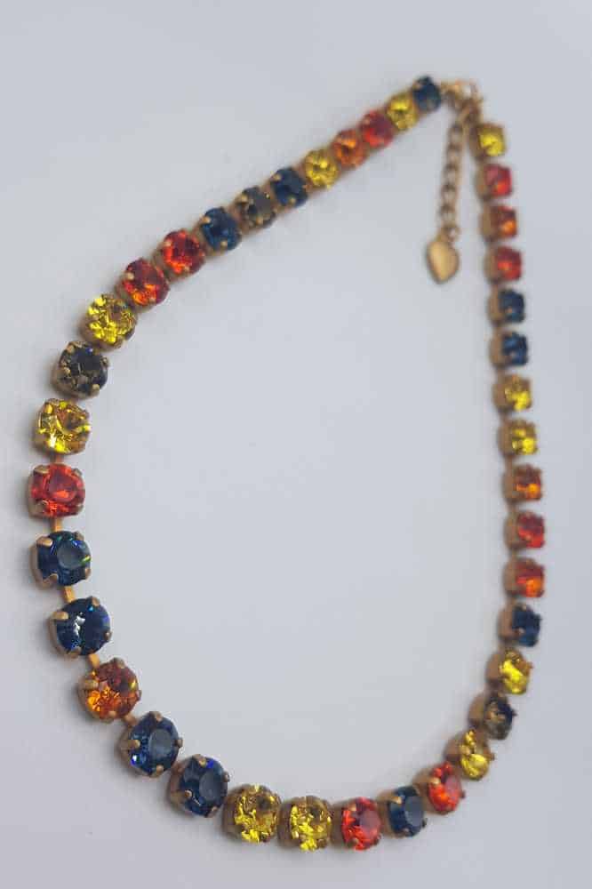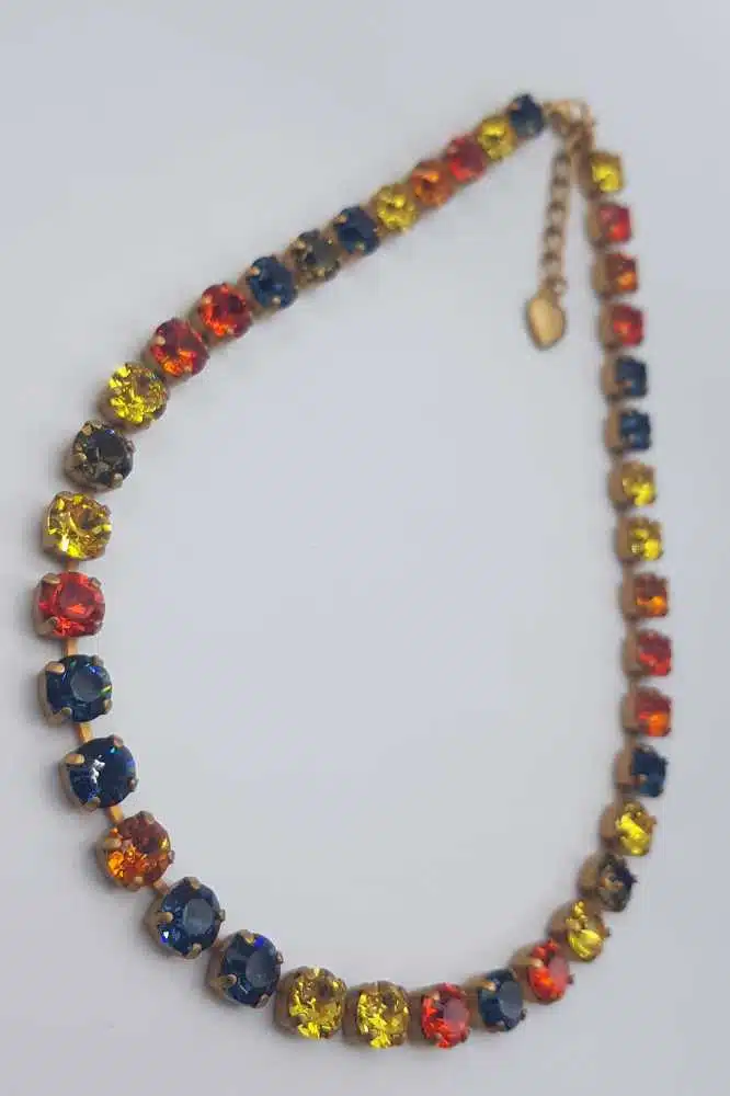 De Luna Matte Gold L103 Orange and Gold ketting van Nell Bijoux straalt luxe en elegantie uit en wordt met de hand vervaardigd in ons eigen atelier. Elke ketting is uniek, met een prachtig samenspel van kleuren en diep schitterende Swarovski-kristallen. De matte gouden afwerking en de prachtige, nikkelvrije legering zorgen voor een stijlvolle uitstraling en langdurige kwaliteit. Perfect voor elke gelegenheid en beschikbaar in meerdere kleurstellingen. Voeg een unieke, persoonlijke touch toe aan je sieradencollectie met deze verfijnde ketting.