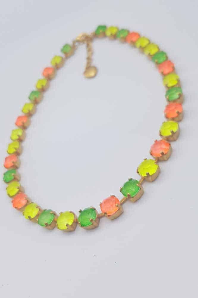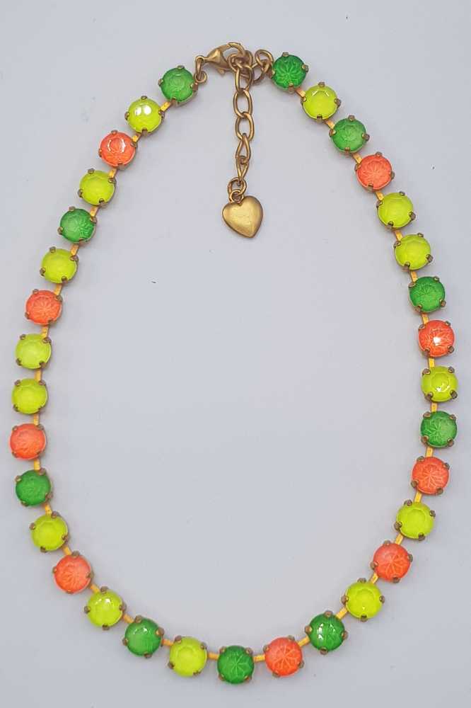 De Luna Matte Gold LMG105 Neon Orange ketting van Nell Bijoux straalt luxe en elegantie uit en wordt met de hand vervaardigd in ons eigen atelier. Elke ketting is uniek, met een prachtig samenspel van kleuren en diep schitterende Swarovski-kristallen. De matte gouden afwerking en de prachtige, nikkelvrije legering zorgen voor een stijlvolle uitstraling en langdurige kwaliteit. Perfect voor elke gelegenheid en beschikbaar in meerdere kleurstellingen. Voeg een unieke, persoonlijke touch toe aan je sieradencollectie met deze verfijnde ketting.